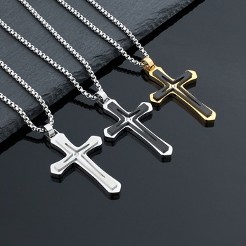 Nouvelle arrivée Hip Hop en acier inoxydable Christian Jesus Collier pour homme Collier croix pour homme