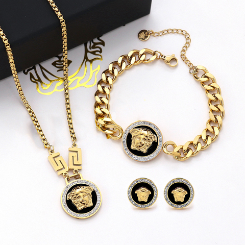 Chất lượng cao 18K mạ vàng không thấm nước thép không gỉ sang trọng thiết kế đồ trang sức thương hiệu Thư Trang sức Set cho phụ nữ